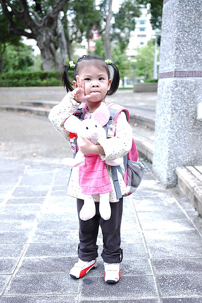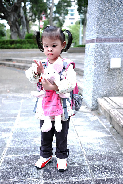但這小妞有時後出門就是要帶著玩偶, 睡覺要抱, 出去玩也要抱