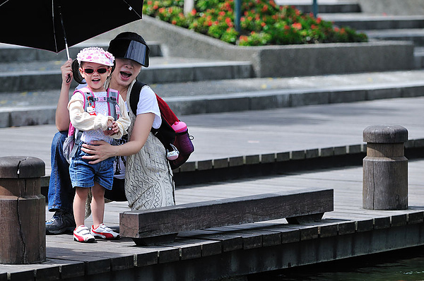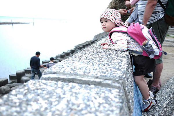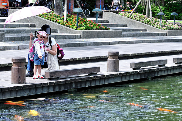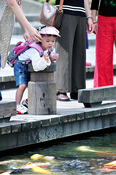 魚群可以非常靠近岸邊, 讓小妞餵魚過程驚叫跟笑聲連連